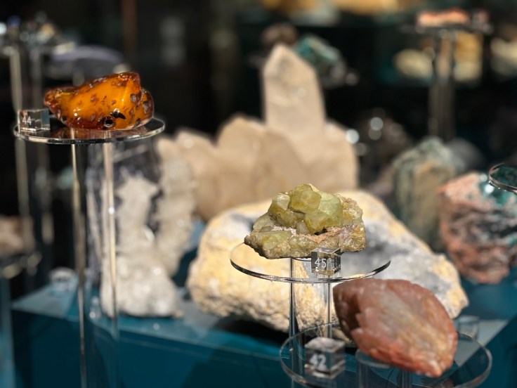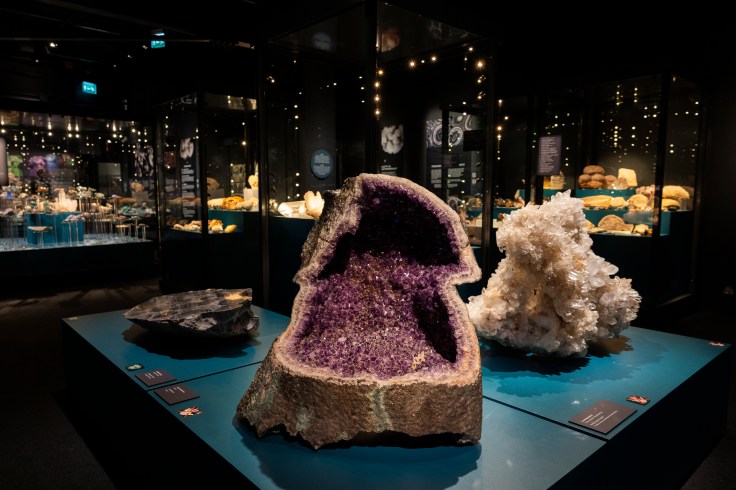 Oma suosikkini mineraalien maailmassa on fluoriitti. Sen tyypillinen, selkeä kidemuoto ja murrettu väriskaala miellyttävät silmääni. Piditpä sitten kirkkaista tai hillitymmistä sävyistä, terävistä muodoista tai pyöreistä pallukoista, näyttely tarjoaa kaunista katsottavaa ja kivaa koettavaa kaikenikäisille. On riemastuttavaa, että kiviä ja mineraaleja voi tarkastella niin monista eri näkökulmista. Katseletko sinä niitä esteetikon, tutkijan, keräilijän vai seikkailijan silmin?