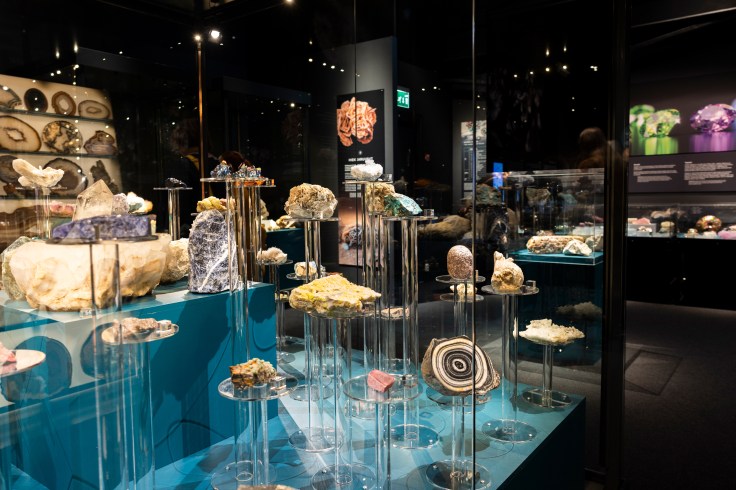 Käyntipäivänä näyttelytilassa oli verraten paljon vierailijoita ja tilan äänimaisema olikin innostunut: lasten huudahdukset ja vierailijoiden supatukset sävyttivät hauskasti kokemusta. Kävijämäärästä huolimatta kulkutilaa oli riittävästi, jotta kiviä ja mineraalien nimiä saattoi pysähtyä tutkimaan rauhassa estämättä muiden kulkua.